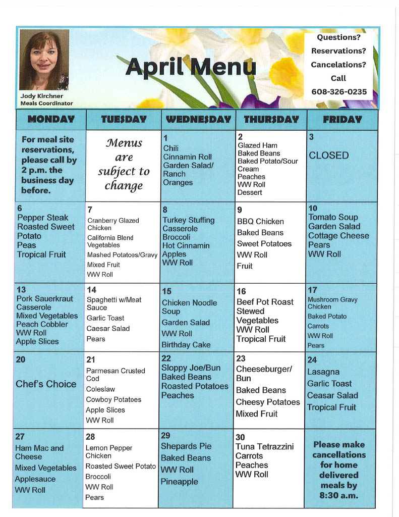 Home Delivered Meals are also provided to the homebound. If you are interested in learning more, call the Aging & Disability Resource Center office at (608)326-0235 to inquire about service in your area.